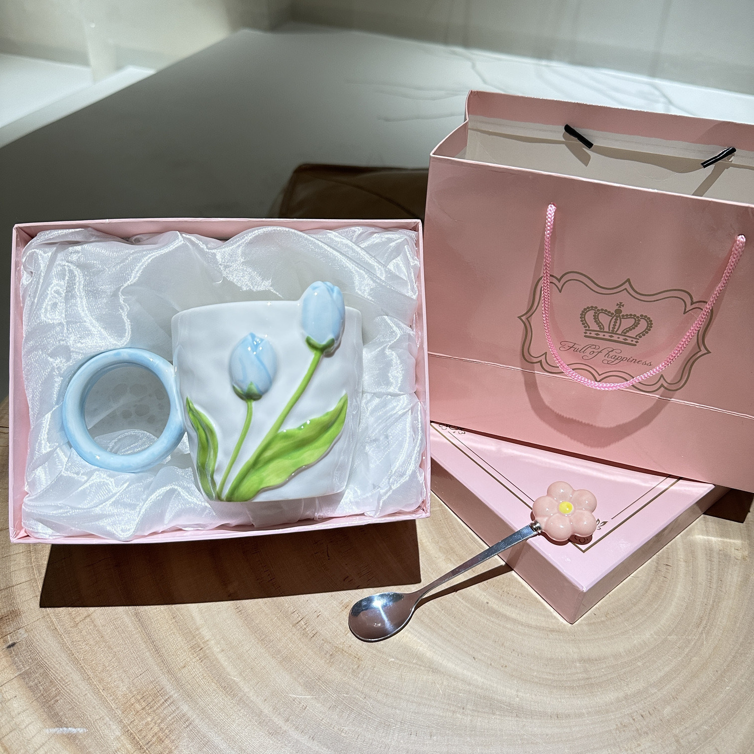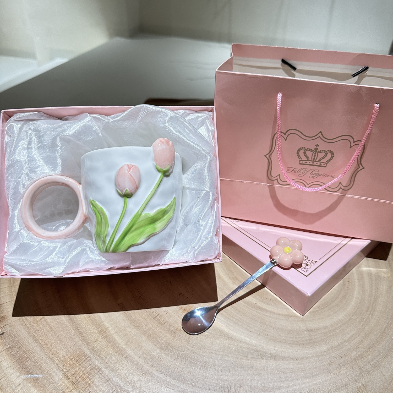 チューリップ陶磁器マグカップ北欧プレゼントカップ女子事務カップカップコーヒーカップスプーン付き朝食カップ