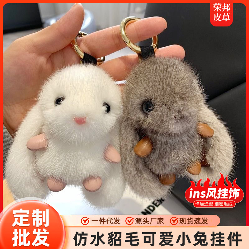 ミンクの毛の車のキーホルダーのペンダントのかわいいウサギの誕生日プレゼントのぬいぐるみの携帯電話のカバンのペンダント