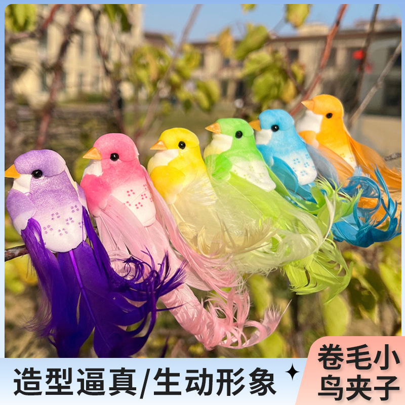 シミュレーション鳥巻毛鳥メーカー直販卸売りシミュレーション羽毛巻毛小鳥泡鳥六色工芸品部品