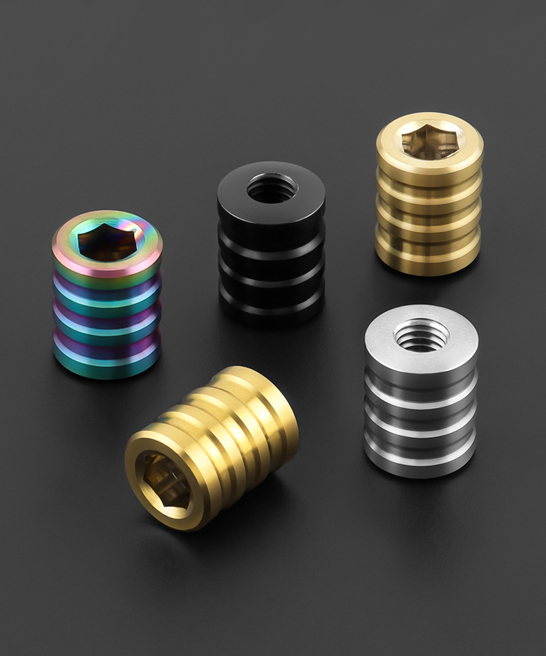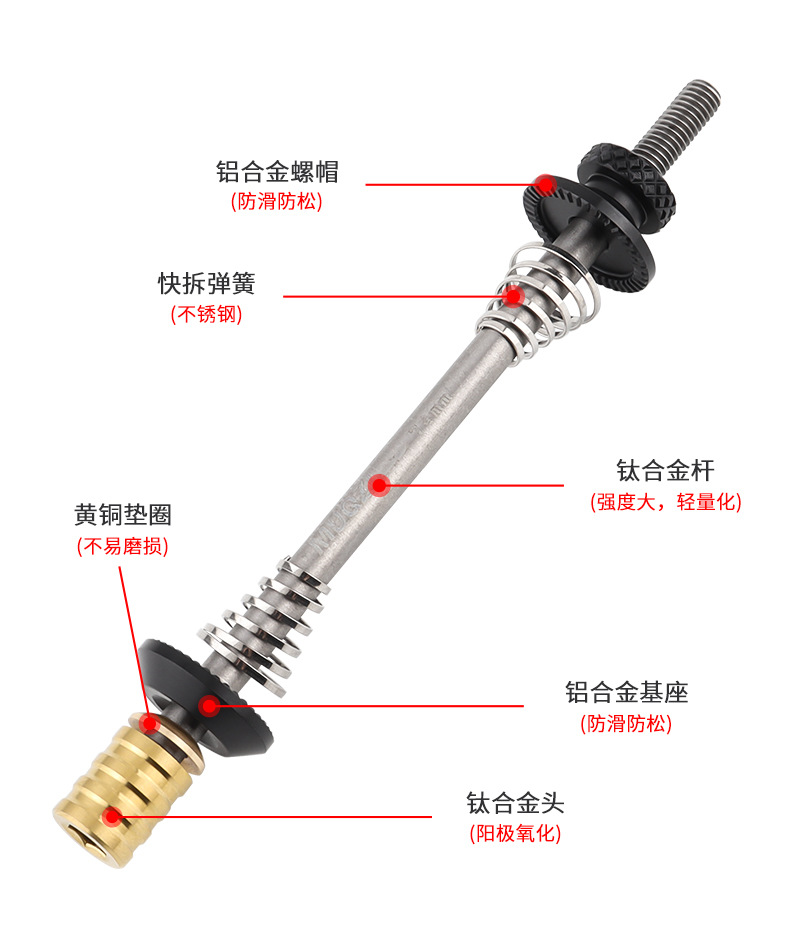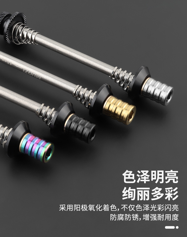 特点:钛合金与铝合金两种材质结合,强度高,轻量化设计,CNC铣削,阳极氧化镀层,色泽亮丽。