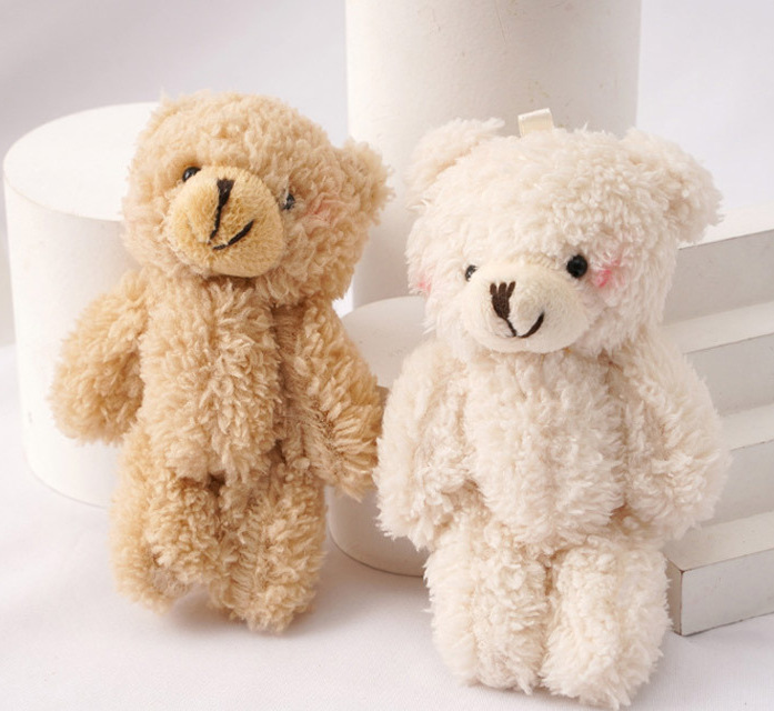 メーカーは頬紅熊巻き毛カップルの関節熊ぬいぐるみのキーホルダーを提供しています。