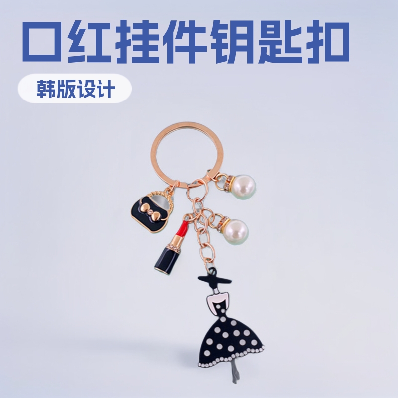 国境を越えた韓国版ファッション滴油黒スカート口紅ペンダントキーホルダー真珠キーホルダー女性バッグアクセサリー