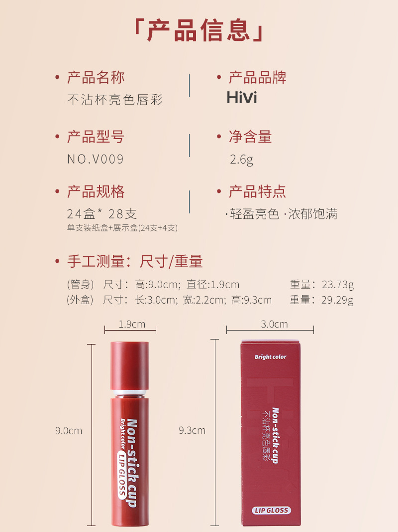 製品名 HiViはカップの明るい色のリップグロスをつけません。