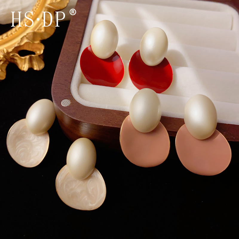 秋冬新款几何撞色椭圆耳钉女气质时尚轻奢简约百搭设计感耳环批发