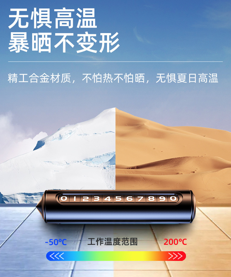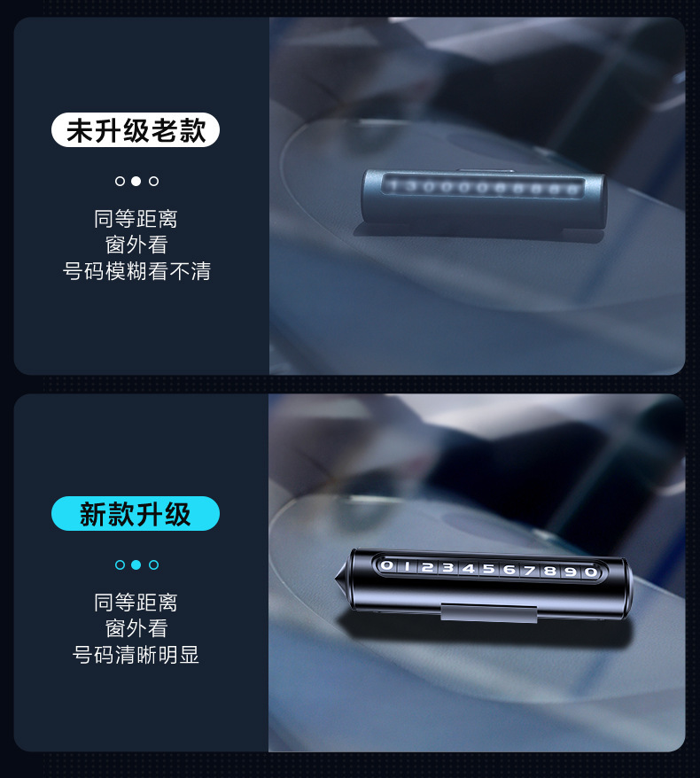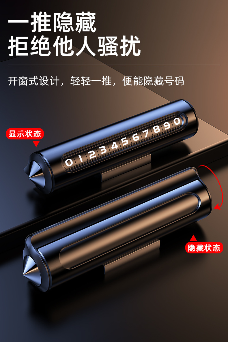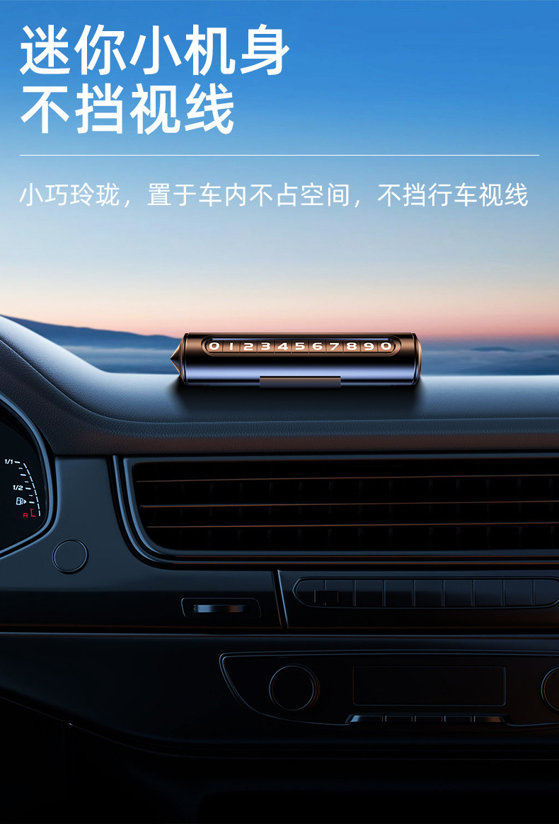 挪车电话牌车内用临时停车号码牌一键隐藏式铝合金材质车载移车牌