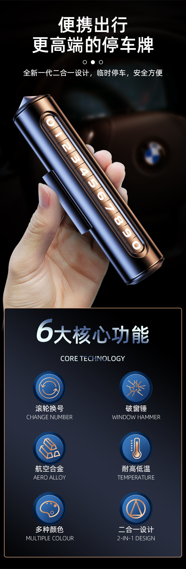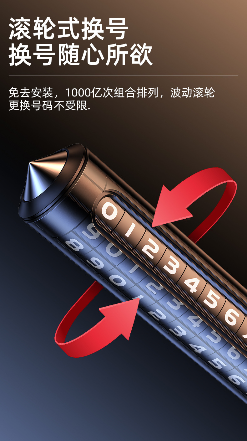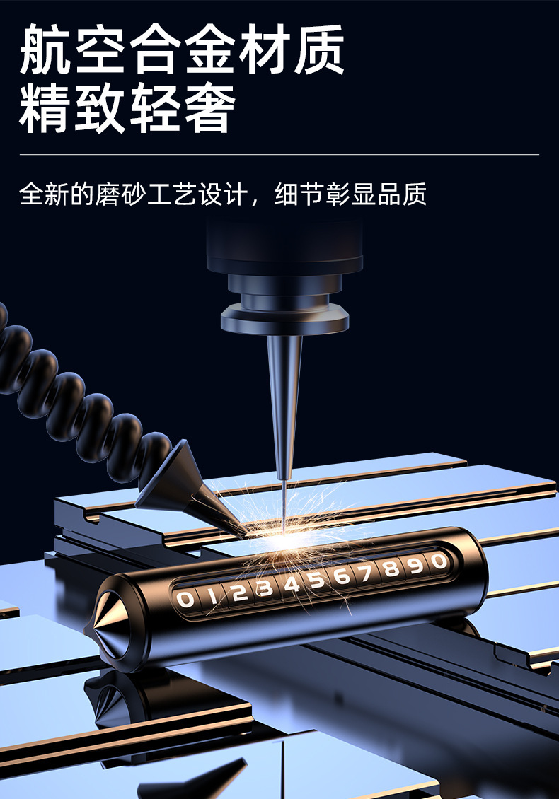 挪车电话牌车内用临时停车号码牌一键隐藏式铝合金材质车载移车牌