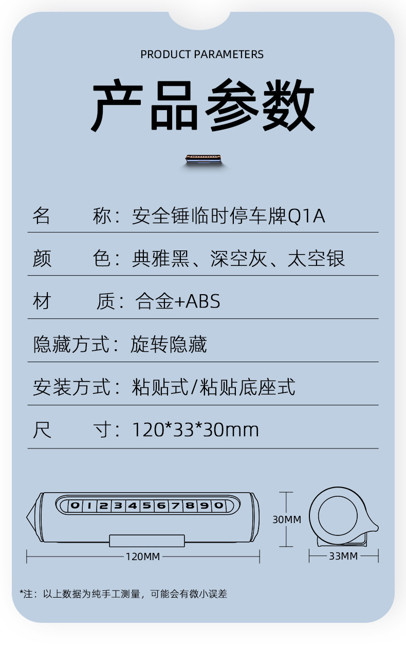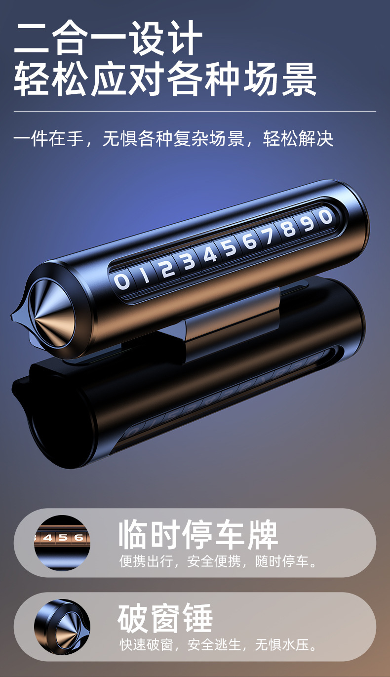 汽车破窗器车内号码牌临时停车专用挪车电话牌摆件临时停车安全锤