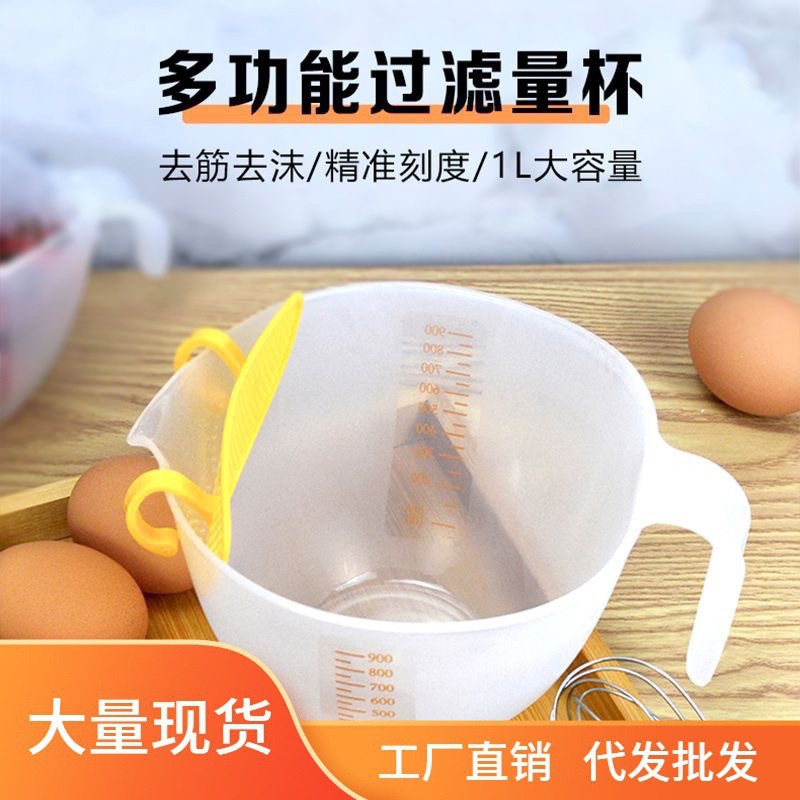 フィルタカップ大容量スケール付き卵液プラスチック卵カップ卵焙煎フィルタ付きキッチン米ボウル