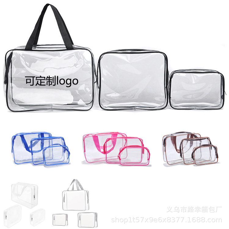 Pvc透明防水化粧バッグ三点セット印刷ロゴ洗面用品収納バッグ大容量収納袋