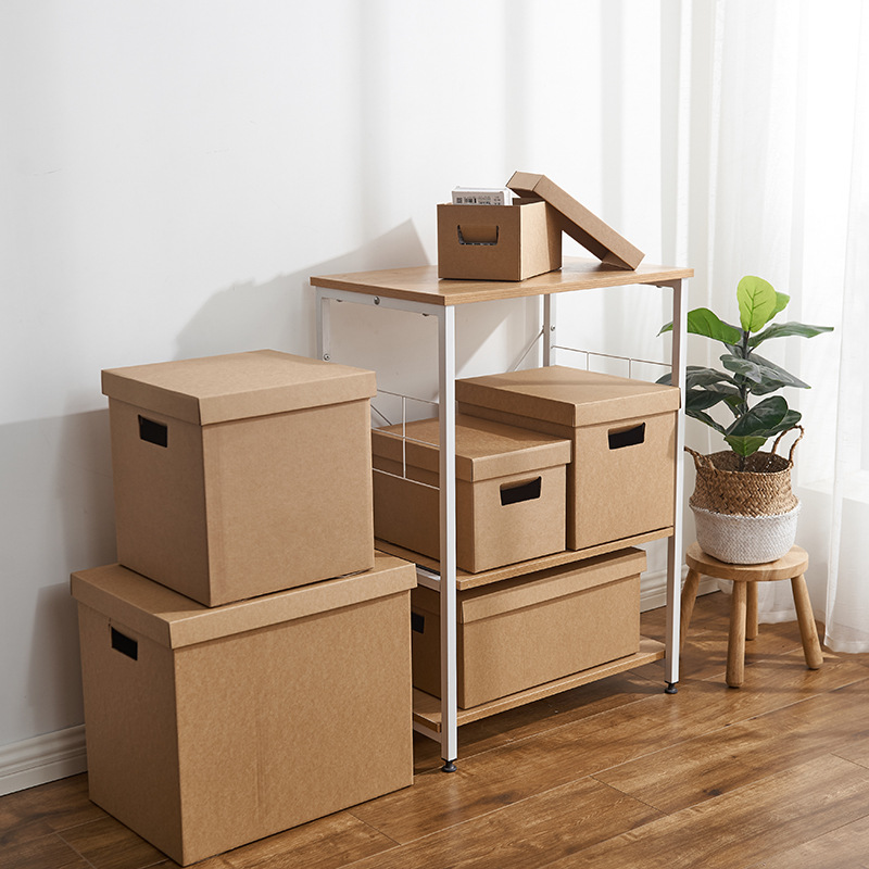 クラフト紙収納ボックス引っ越し紙蓋付き収納ボックス書類書籍衣類収納デスクトップ書類収納ボックス