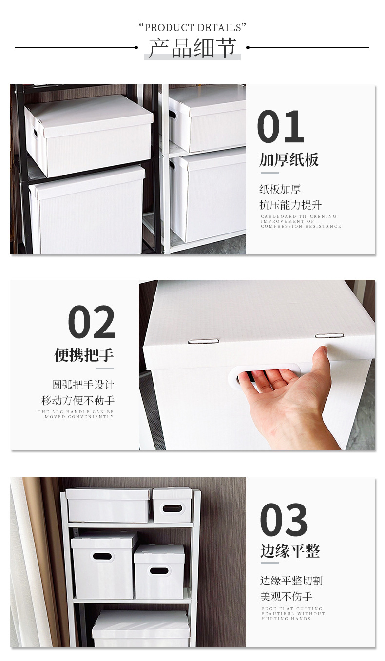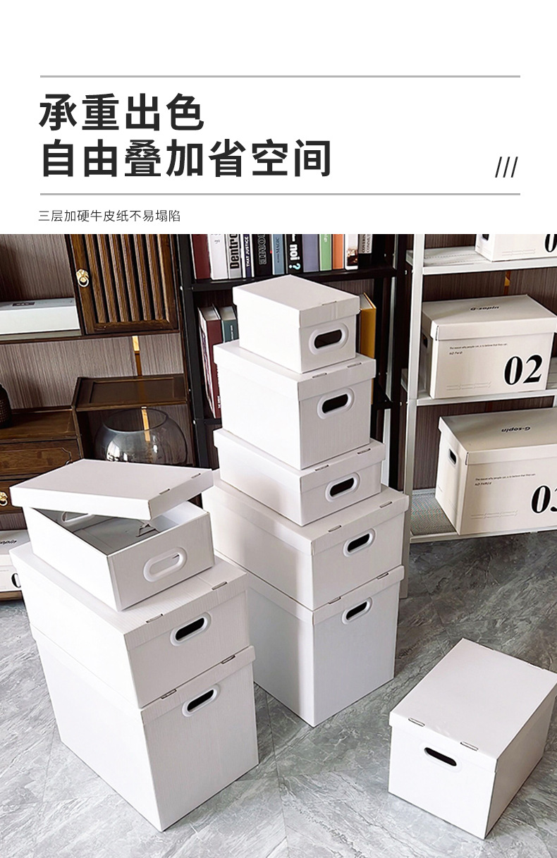 純白紙蓋付き収納ボックス収納紙箱ファイルボックススナック玩具収納ボックス折りたたみ衣類整理ボックス