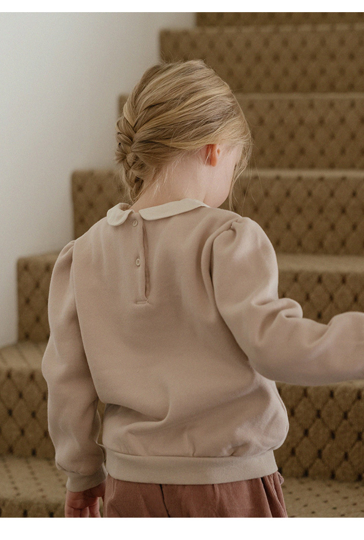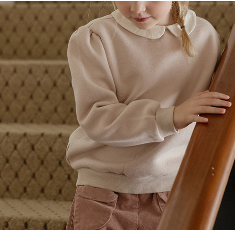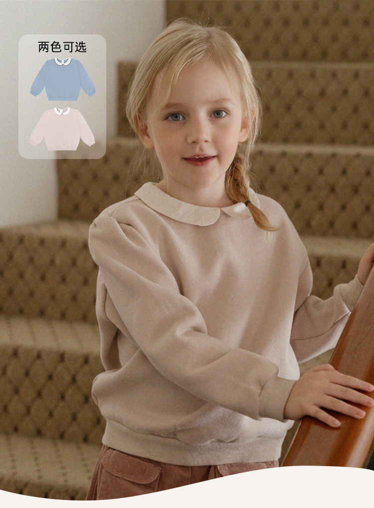 2026春秋新作 可愛いスプライスドールカラーデザインスウェットシャツ 子供用裏起毛暖かいプルオーバートップス 女の子用