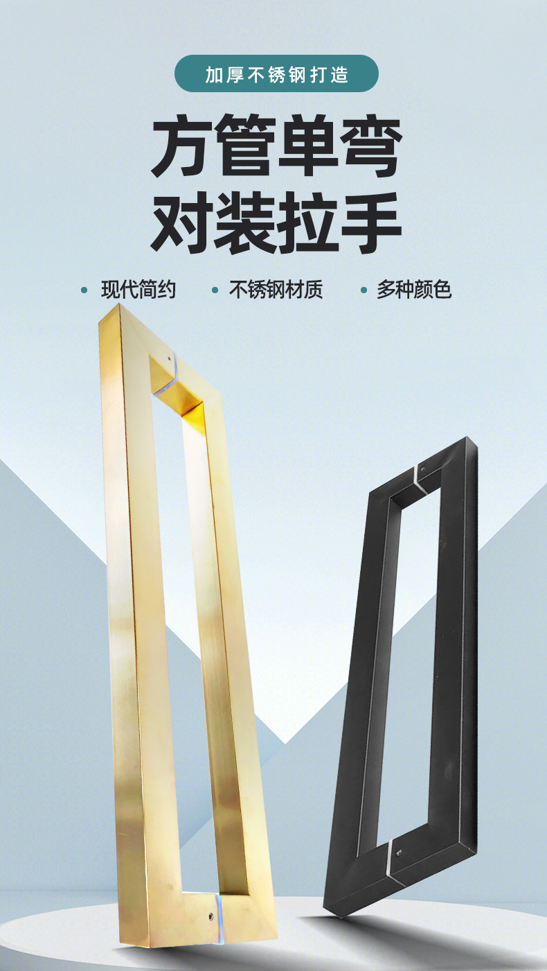 シンプルな風の新しいステンレスの角パイプの4つの曲げ対の取っ手の扉のガラスのドアの取っ手の部品は引き戸の取っ手を押します。