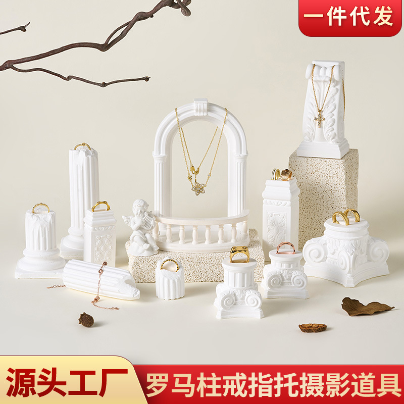 高级感石膏戒指托首饰品拍照道具陈列摆件白色罗马柱摄影背景装饰