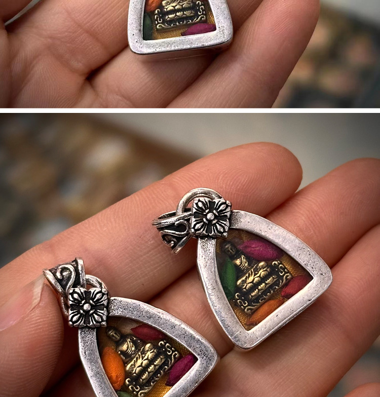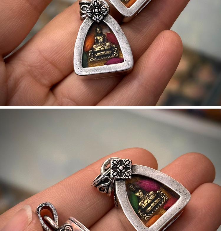 チベット伝来ザキムガウ箱黄財神ペンダントdiy手作り部品チベット銀はペンダントアクセサリーを開けることができる