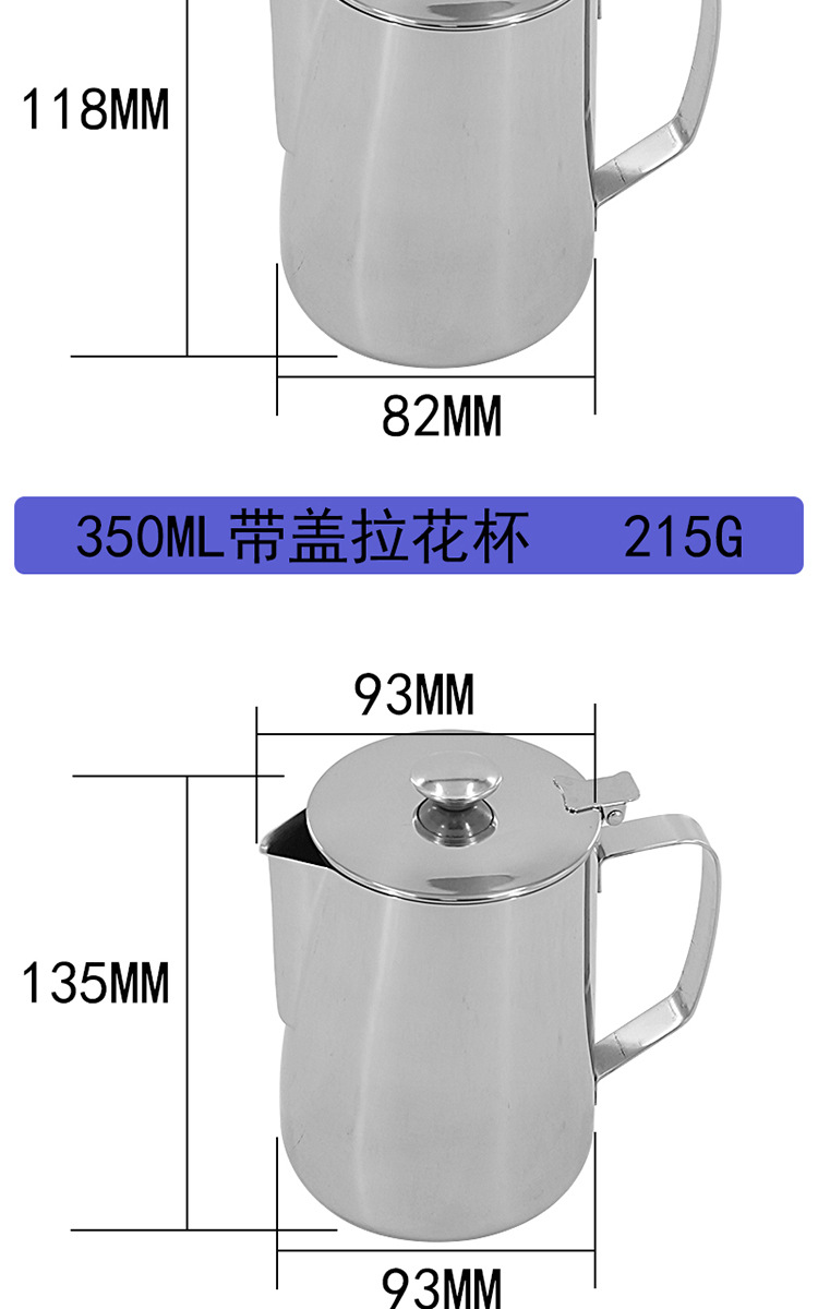 泰摩の尖った口の花を引くかめは304コーヒーのステンレスの花を引く杯の専門のコーヒーマシンの乳を厚くして杯の器具を浸します。