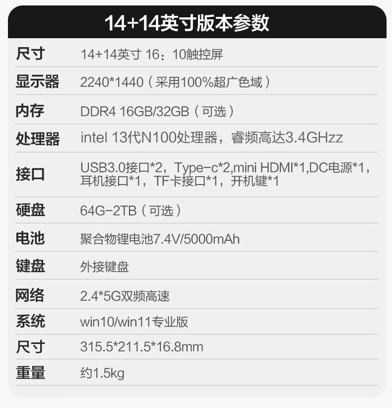 N100/10.5+10.5inch / デュアルスクリーン,N100/14+14inch / デュアルスクリーン,N100/10.5+10.5inch/キーボードスタンド付き,N100/14+14inch/キーボードスタンド付き