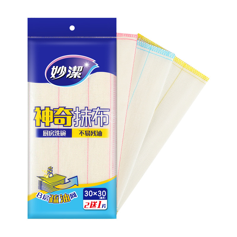 妙潔2 + 1魔法の雑巾8層は油をつけずに油網台所用品の吸水が破れにくい植物繊維雑巾