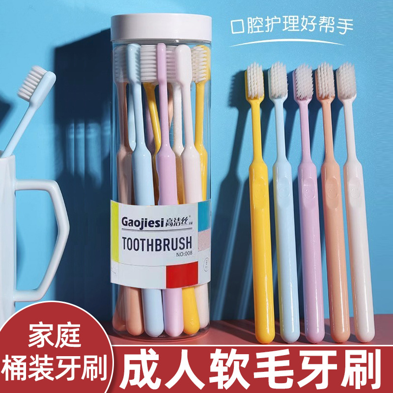 成人歯ブラシメーカー卸売り高級ソフト毛家庭セット家庭用旅行ミックスキャンディー系バケツ入り歯ブラシ
