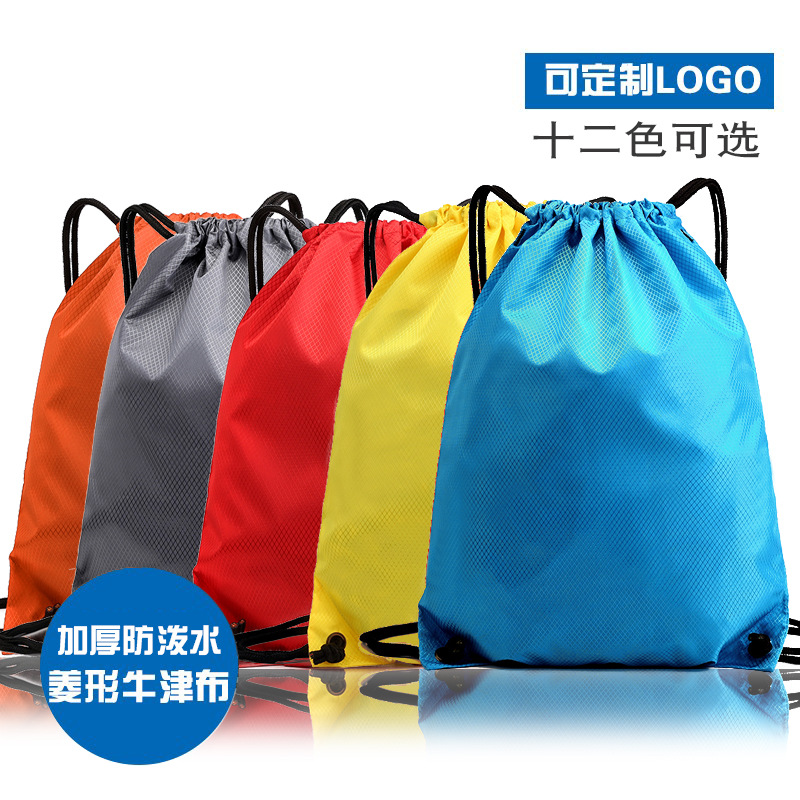 メーカー現物簡易アウトドアスポーツ防水オックスフォード布紐引きリュックサック学生サッカーバッグバスケットボールバッグ印字
