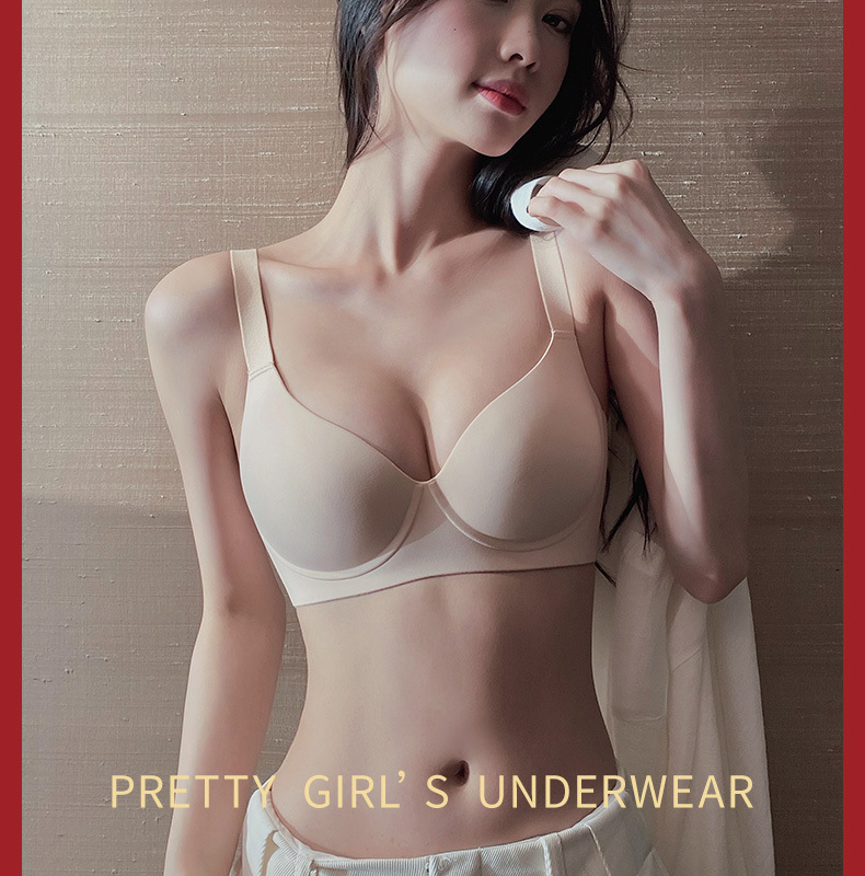 日本の無痕立体垂れ下がり防止下着の一枚式のスチールリングが快適にブラジャーの胸の女性を支えています。