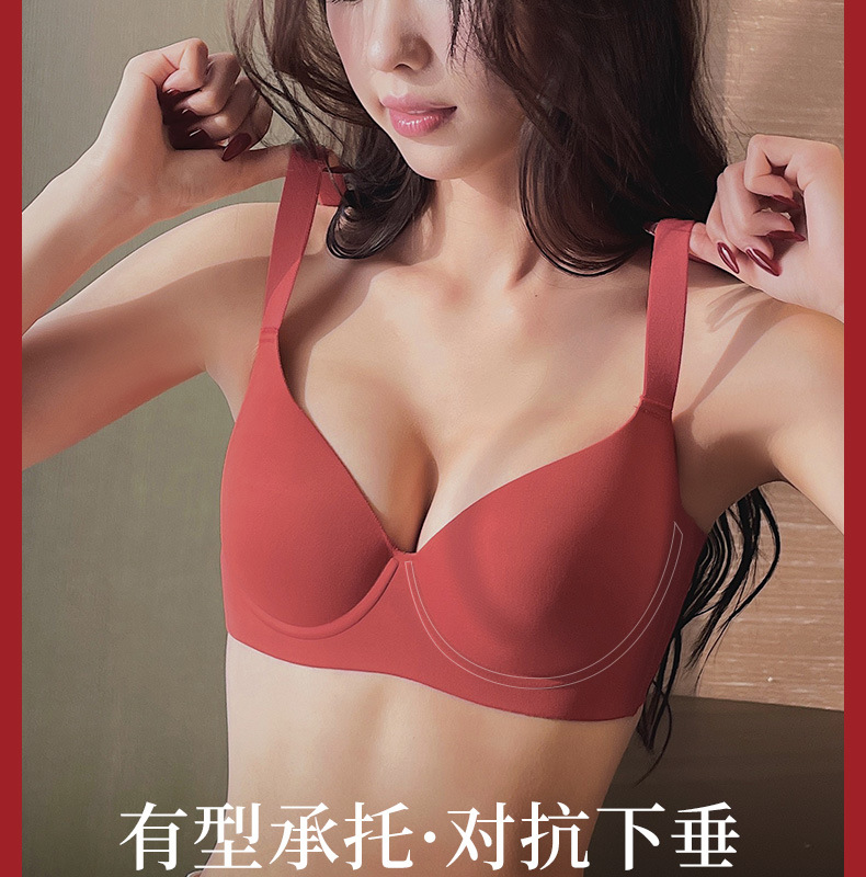 内衣女小胸聚拢2025新款新年本命年红色无钢圈收副乳防外扩胸罩