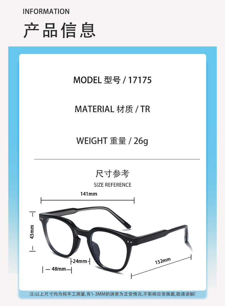 近視鏡女tr90ブルーレイ防止メガネ韓国版米釘黒枠素顔神器平光鏡超軽量現物卸売り