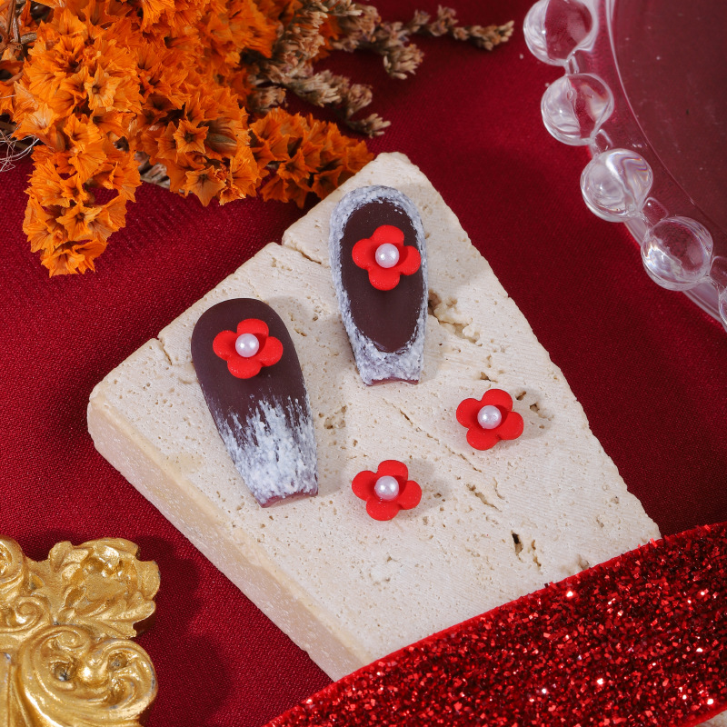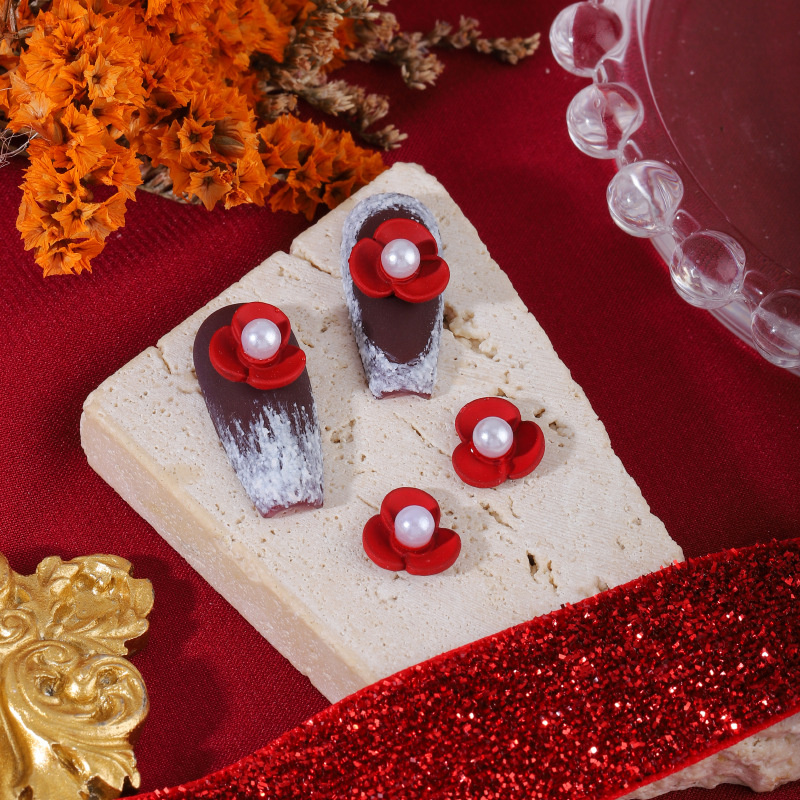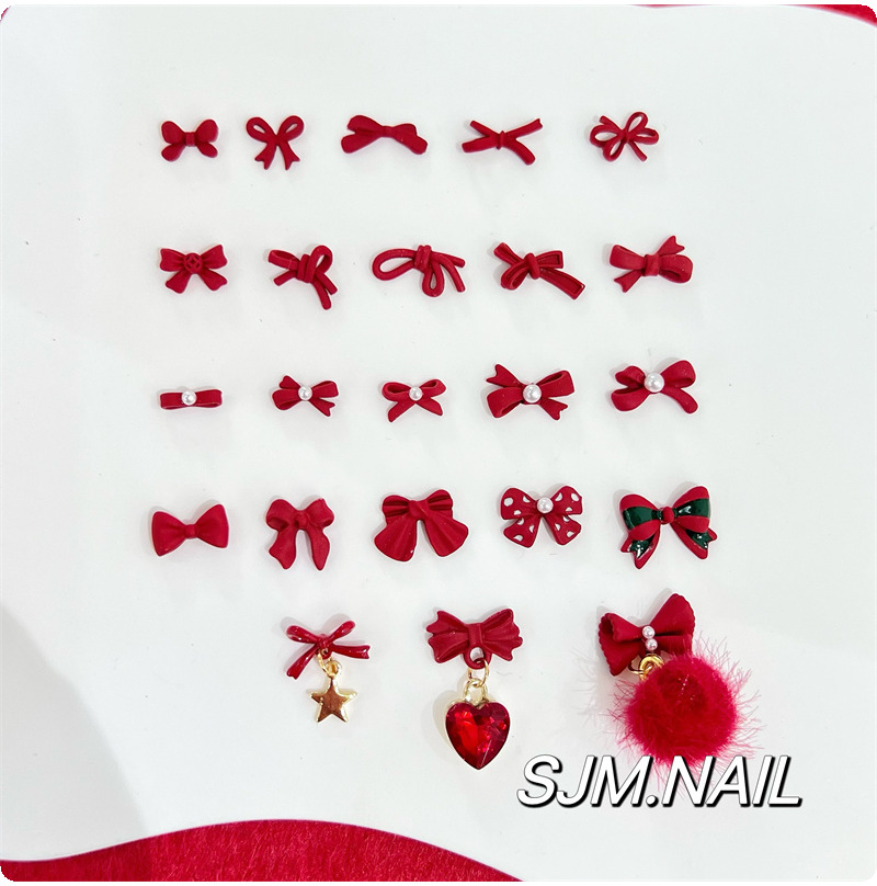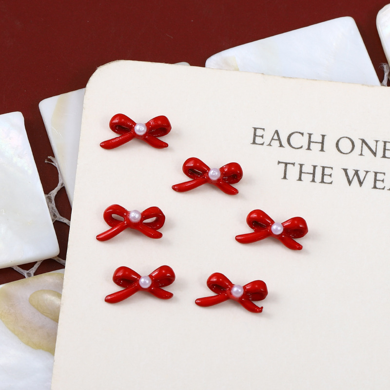 爆款新年红色合金美甲饰品 圣诞珍珠蝴蝶结爱心指甲DIY配饰批发