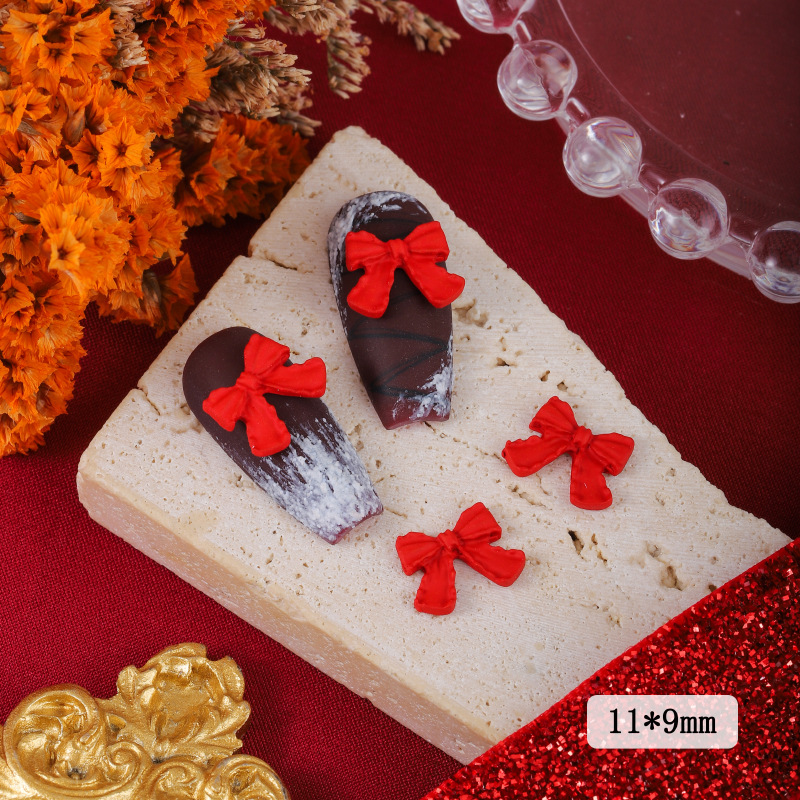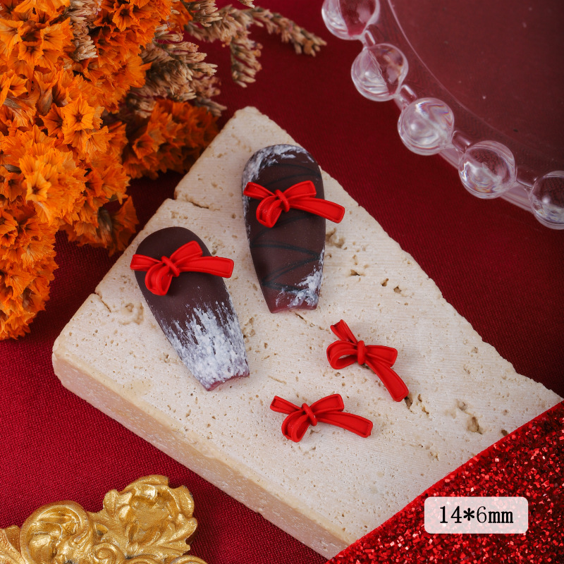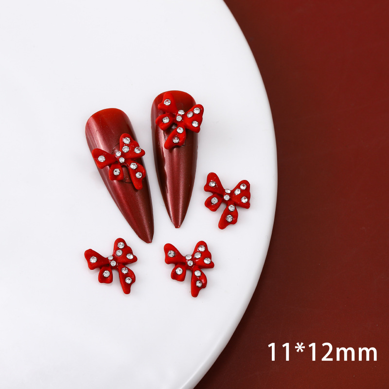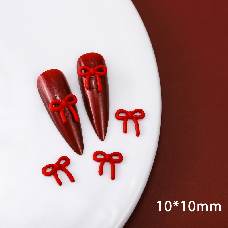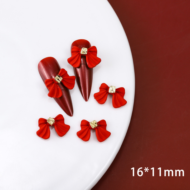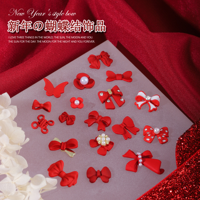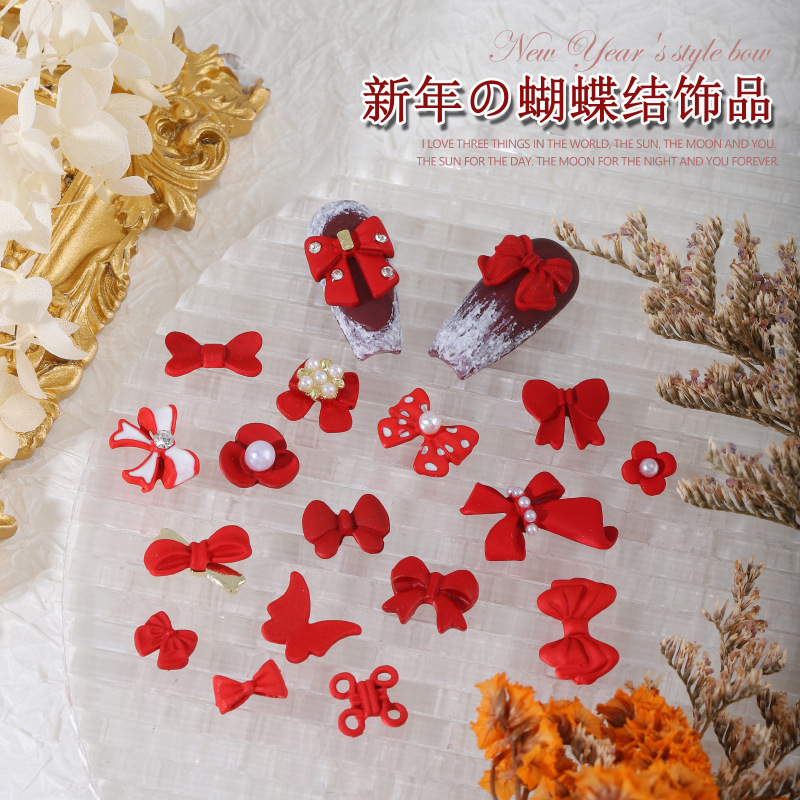 ネイルアクセサリー中国風赤い合金塗装新年クリスマス吉祥如意蝶ネクタイ爪立体アクセサリー
