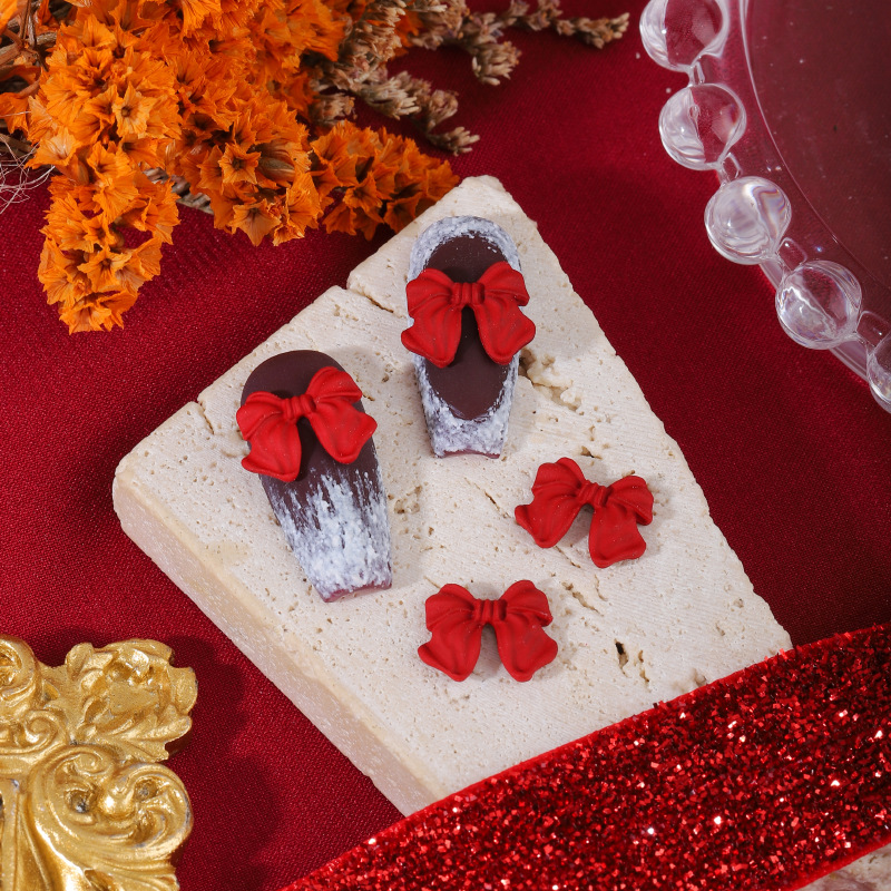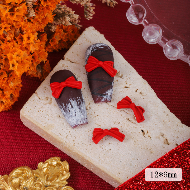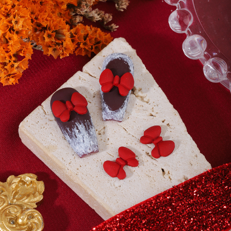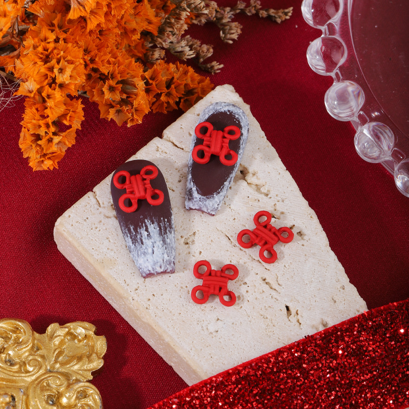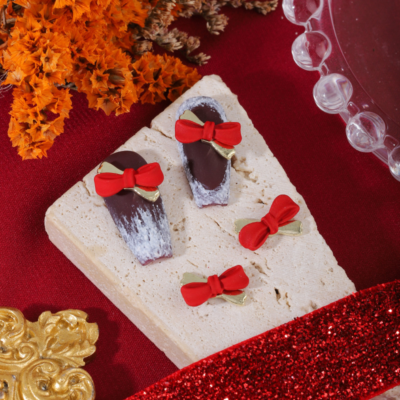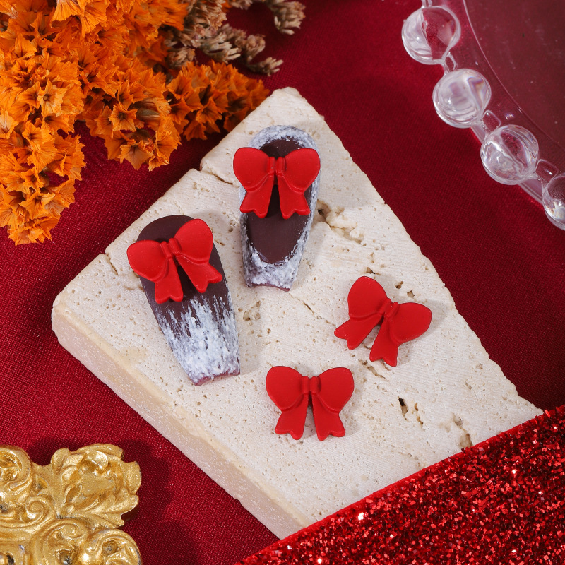 ネイルアクセサリー中国風赤い合金塗装新年クリスマス吉祥如意蝶ネクタイ爪立体アクセサリー
