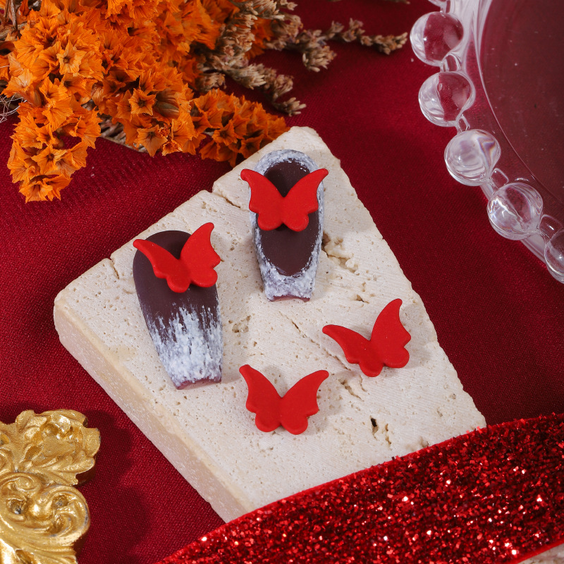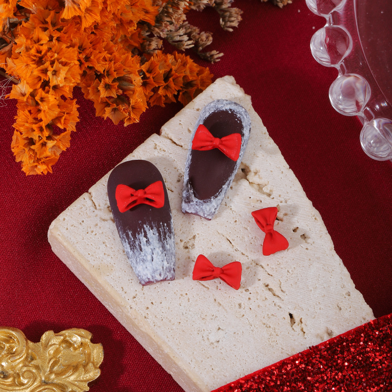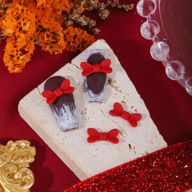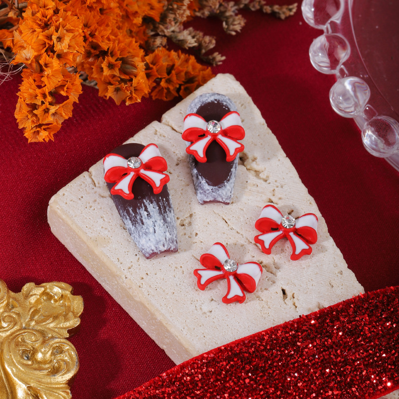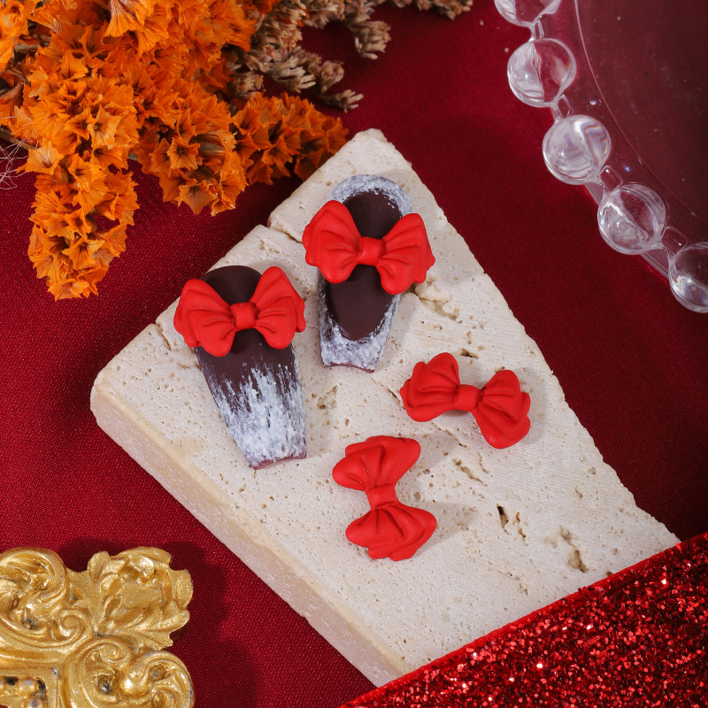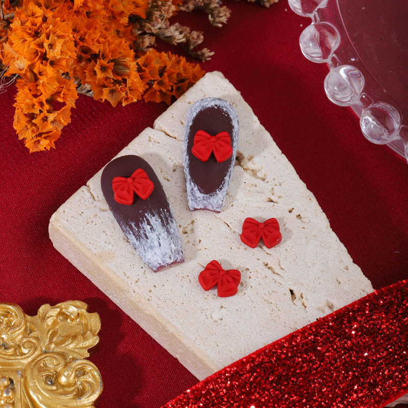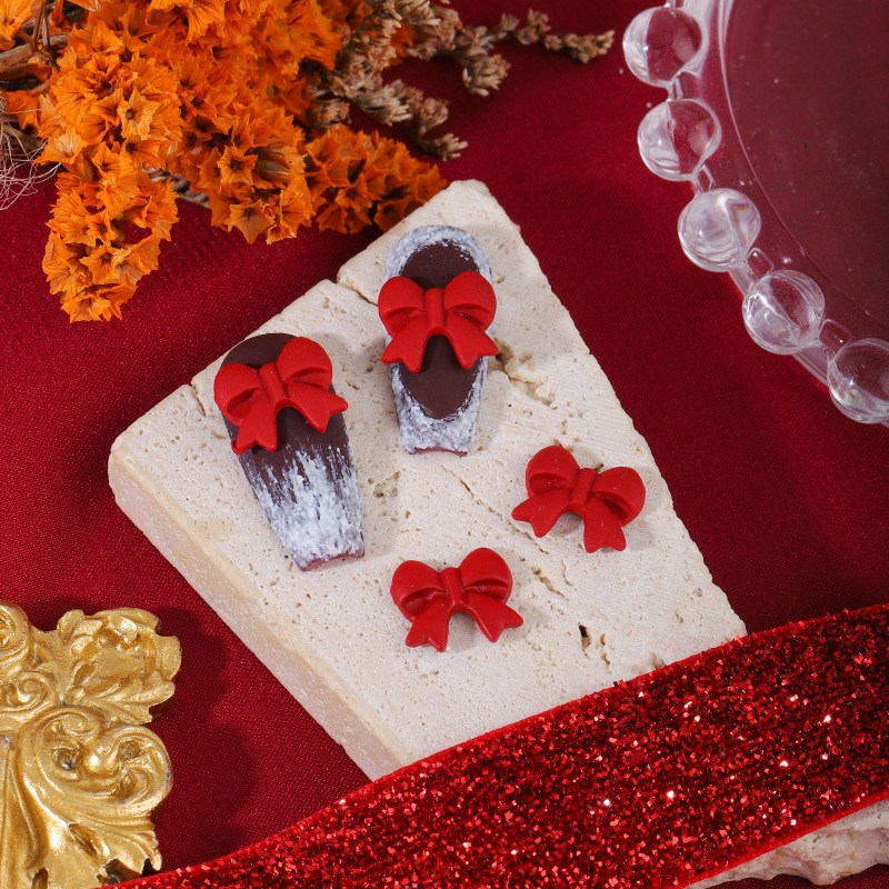 ネイルアクセサリー中国風赤い合金塗装新年クリスマス吉祥如意蝶ネクタイ爪立体アクセサリー