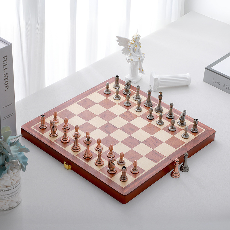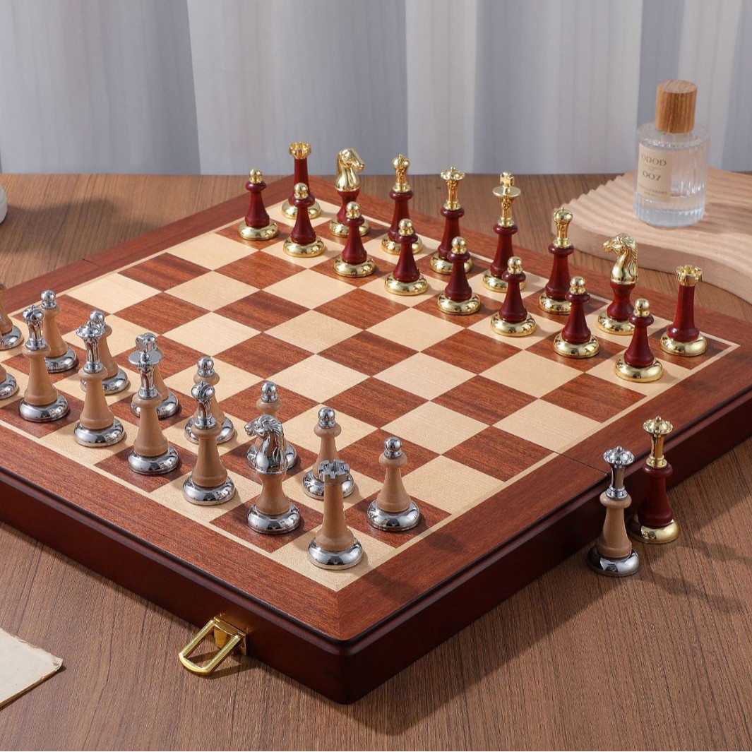 国境を越えた人気のチェスハイエンドギフトボックスセット無垢材折りたたみチェス盤金属チェスの駒チェスレトロヨーロッパ