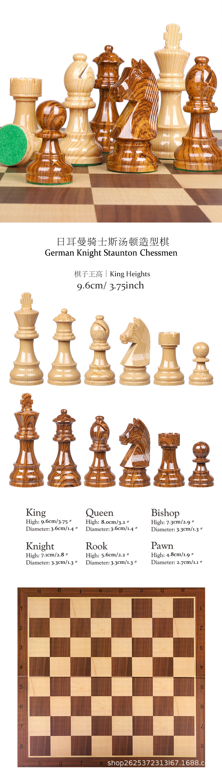 3.75in英寸全实木国际象棋子斯汤顿国际象棋标准比赛大号木质棋子