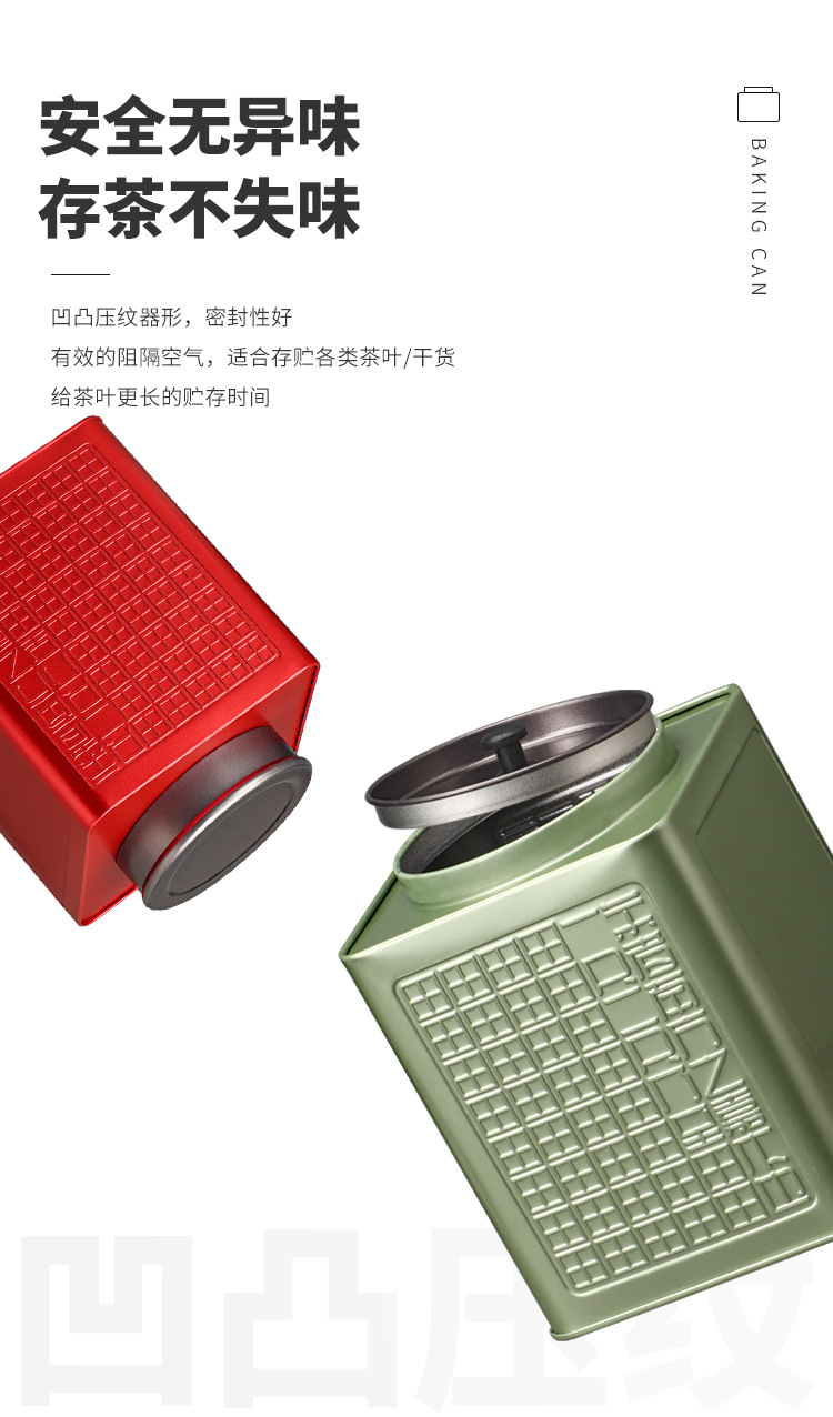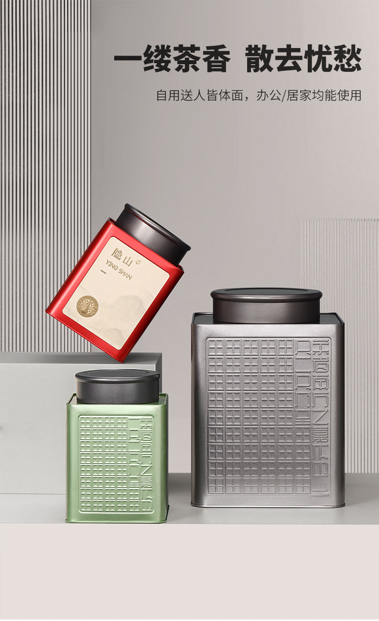 半斤のブリキ茶缶、祁門紅茶、龍井緑茶、白茶、ユニバーサル角型金属茶缶、ブリキ缶
