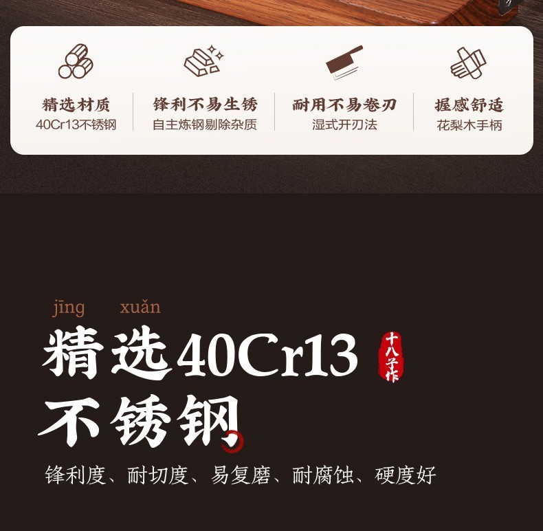 十八子は包丁料理人専用の包丁を作ります。家庭用ステンレス包丁十八子は包丁を切ります。