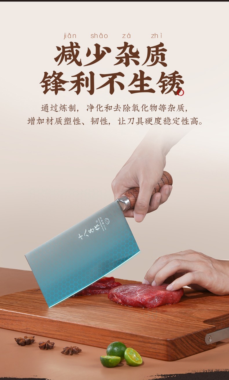 陽江十八子は料理人専用の刀桑刀三合鋼の鋭利な刀を作って肉を切ります。