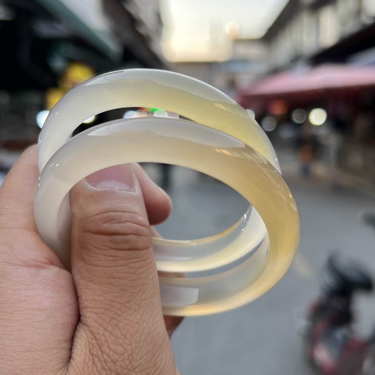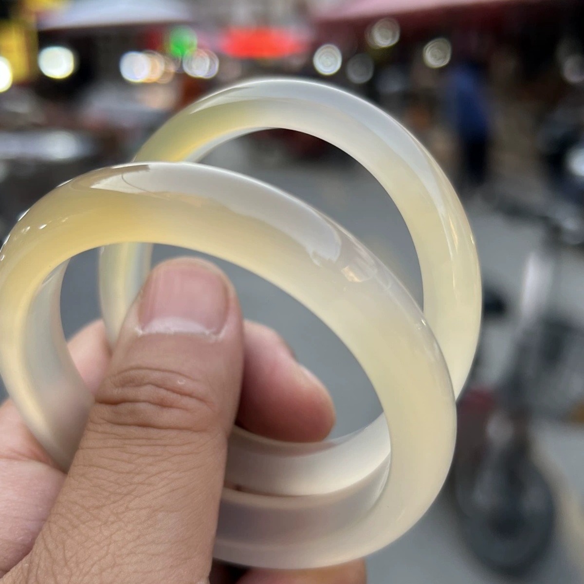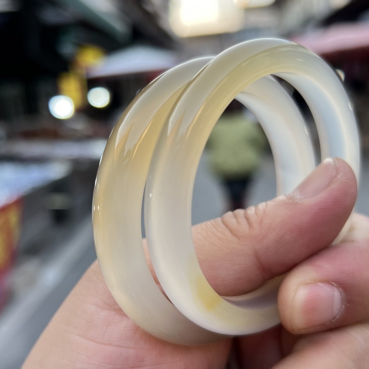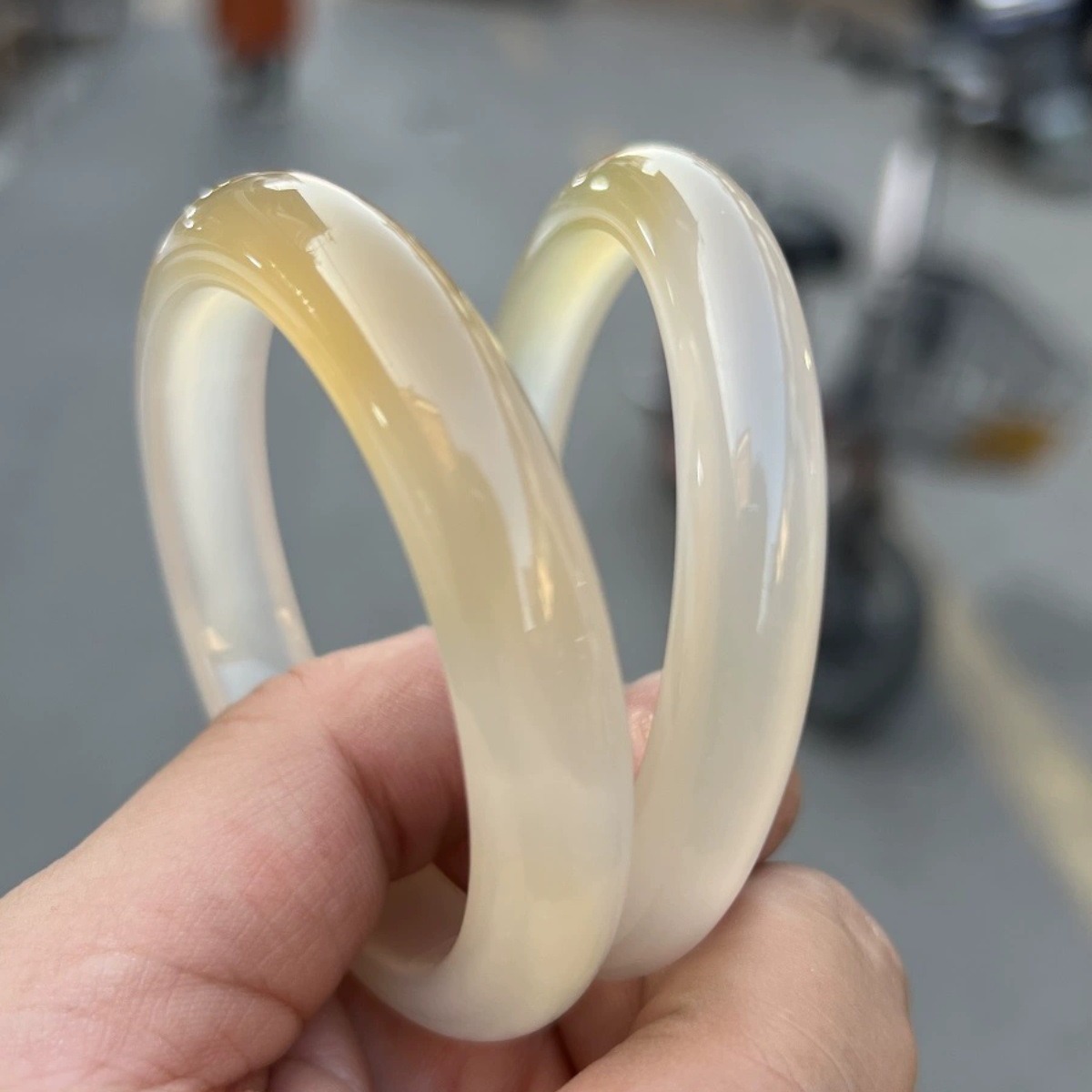 高氷種一口糖ブレスレット半山水玉瑪瑙玉髄石英岩白黄二色プレゼント女