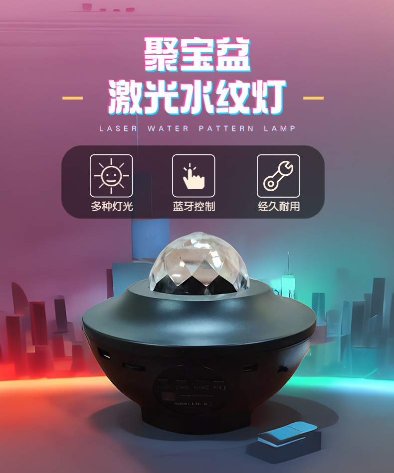 跨境小碗星空投影灯USB蓝牙音响水波纹满天星激光氛围灯小夜灯