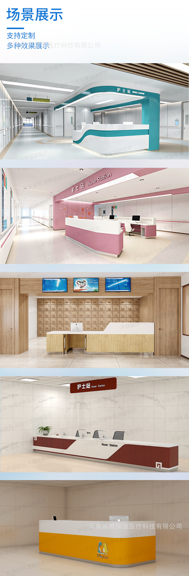 カスタム病院家具、電解鋼板製ナースステーション、ナースワークベンチ、案内台、アクリル人工石案内台
