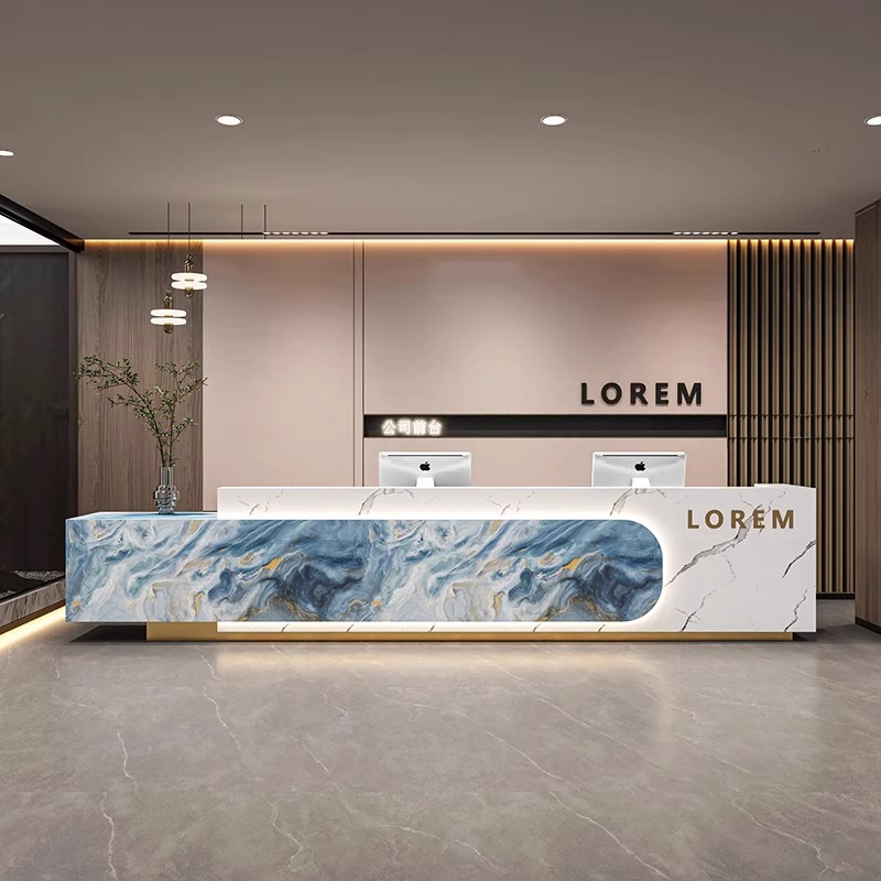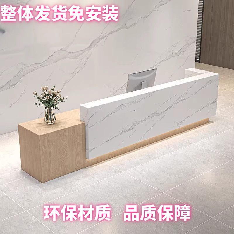 公司大理石前台接待台售楼部酒店大堂会所岩板吧台烤漆收银台柜台