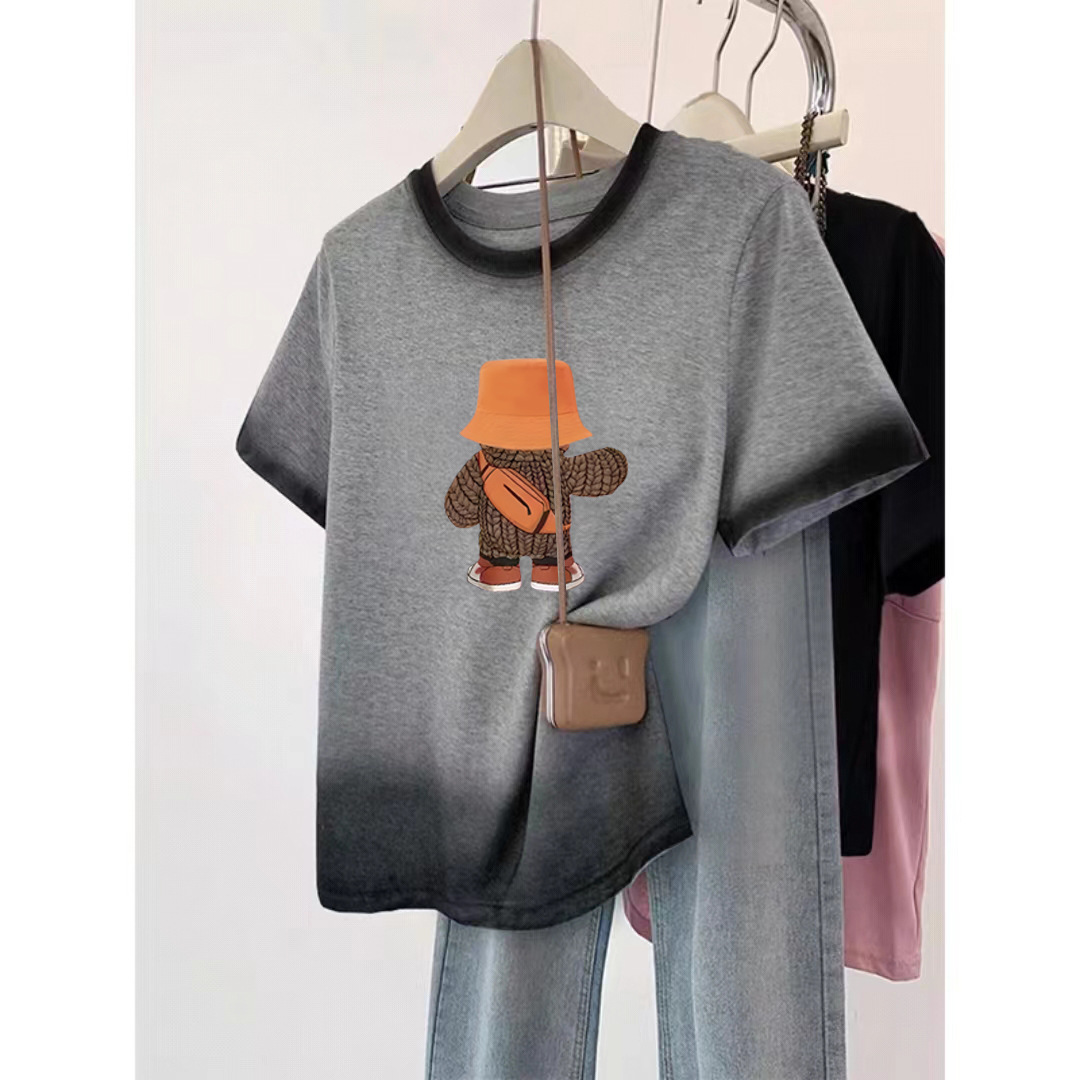 アメリカのヴィンテージ熊純綿プリント半袖tシャツ女性夏潮牌太ったmm 240斤の大きいサイズins上着