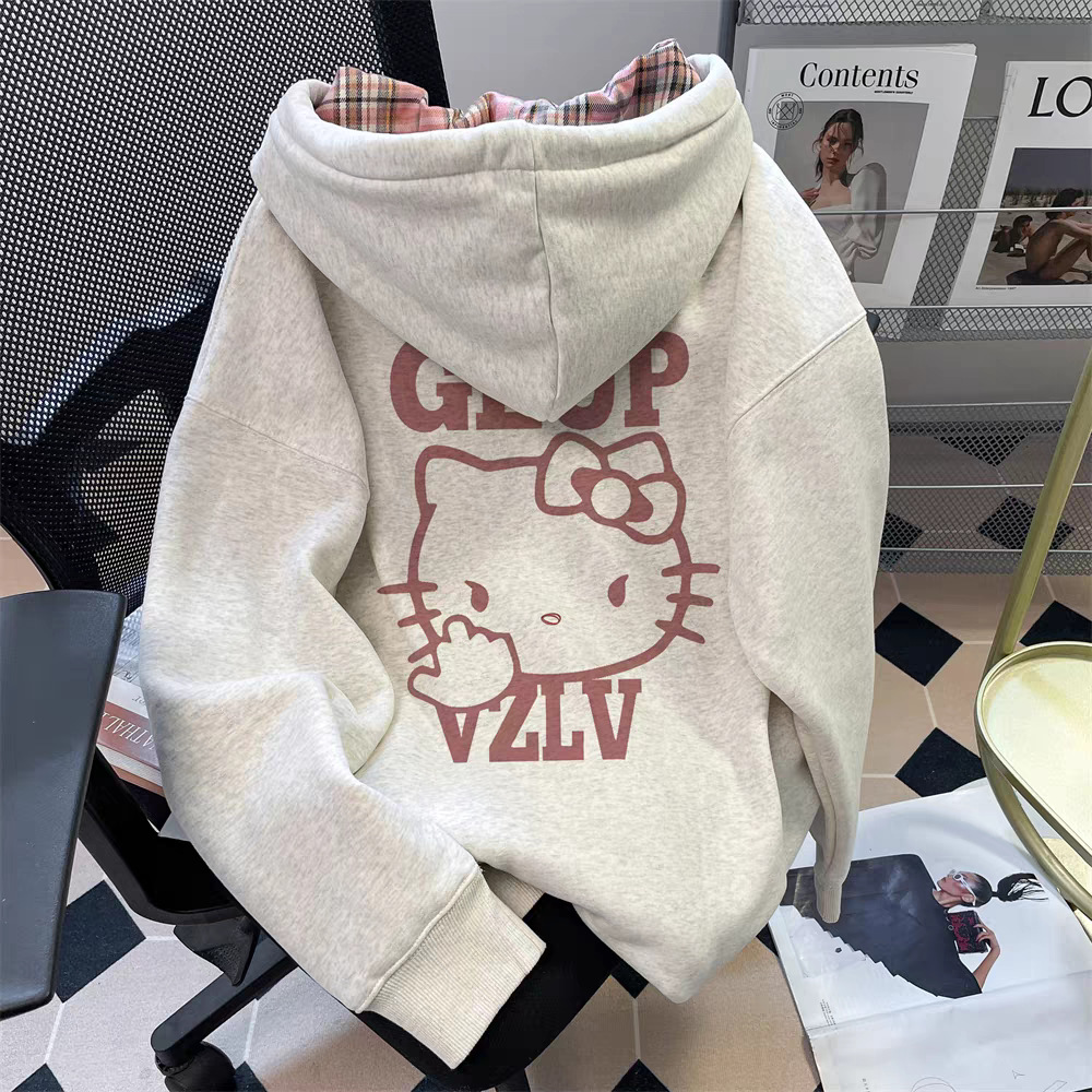 ベルベットは国潮のレトロなフード付きの女性秋冬白灰色の大きいサイズのカジュアルなゆるい痩せた太ったmmの上着を厚くしている