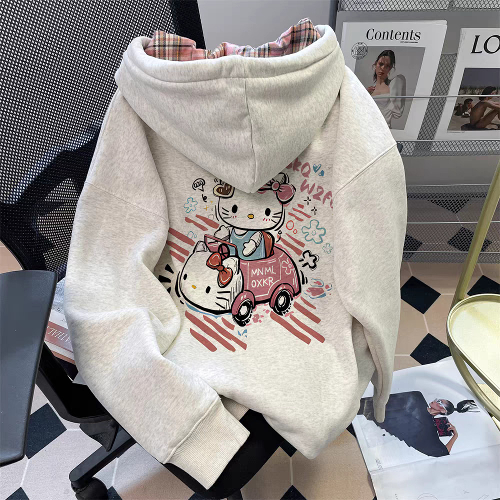加绒加厚印花连帽卫衣2025秋冬季新款中长款保暖纯色百搭上衣潮女