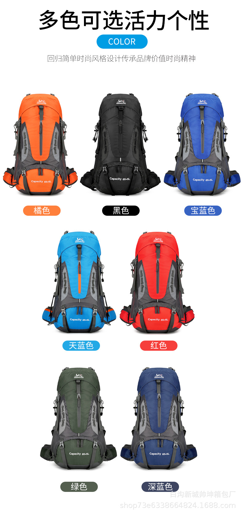 クロスボーダー新型衝突色登山バッグ運動騎行リュックサック大容量背負いシステムアウトドア徒歩リュックサック