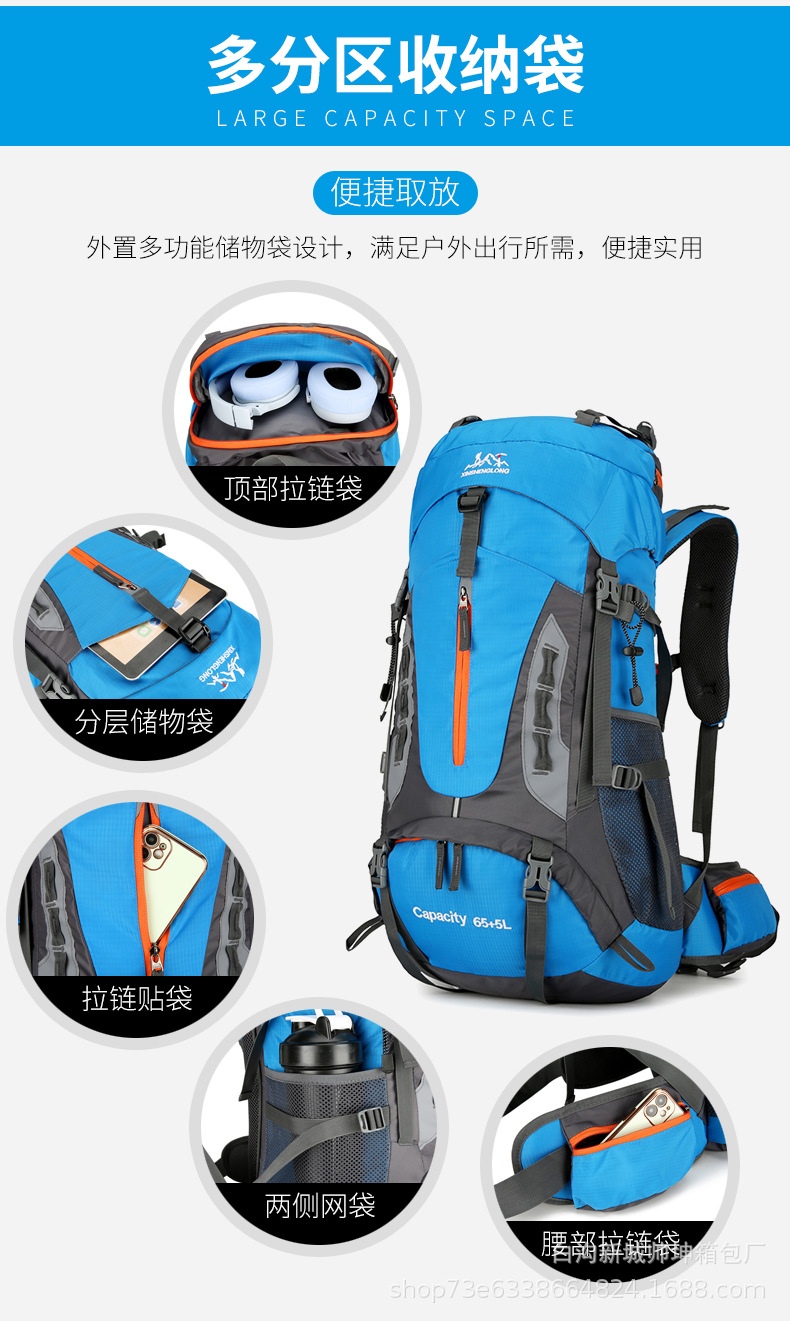 クロスボーダー新品リュックサックアウトドア登山バッグ65L大容量ナイロン旅行キャンプトレッキング登山リュックサック