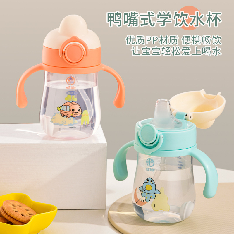 宝宝学饮杯PP婴儿鸭嘴杯带吸管6个月儿童水杯防呛防摔防漏儿童水