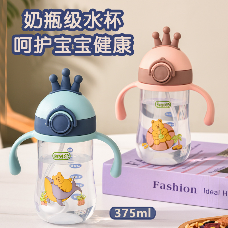 乳幼児ストローカップ春夏新作漫画子供ストローカップ赤ちゃんハンドル付きスケール付き350ml