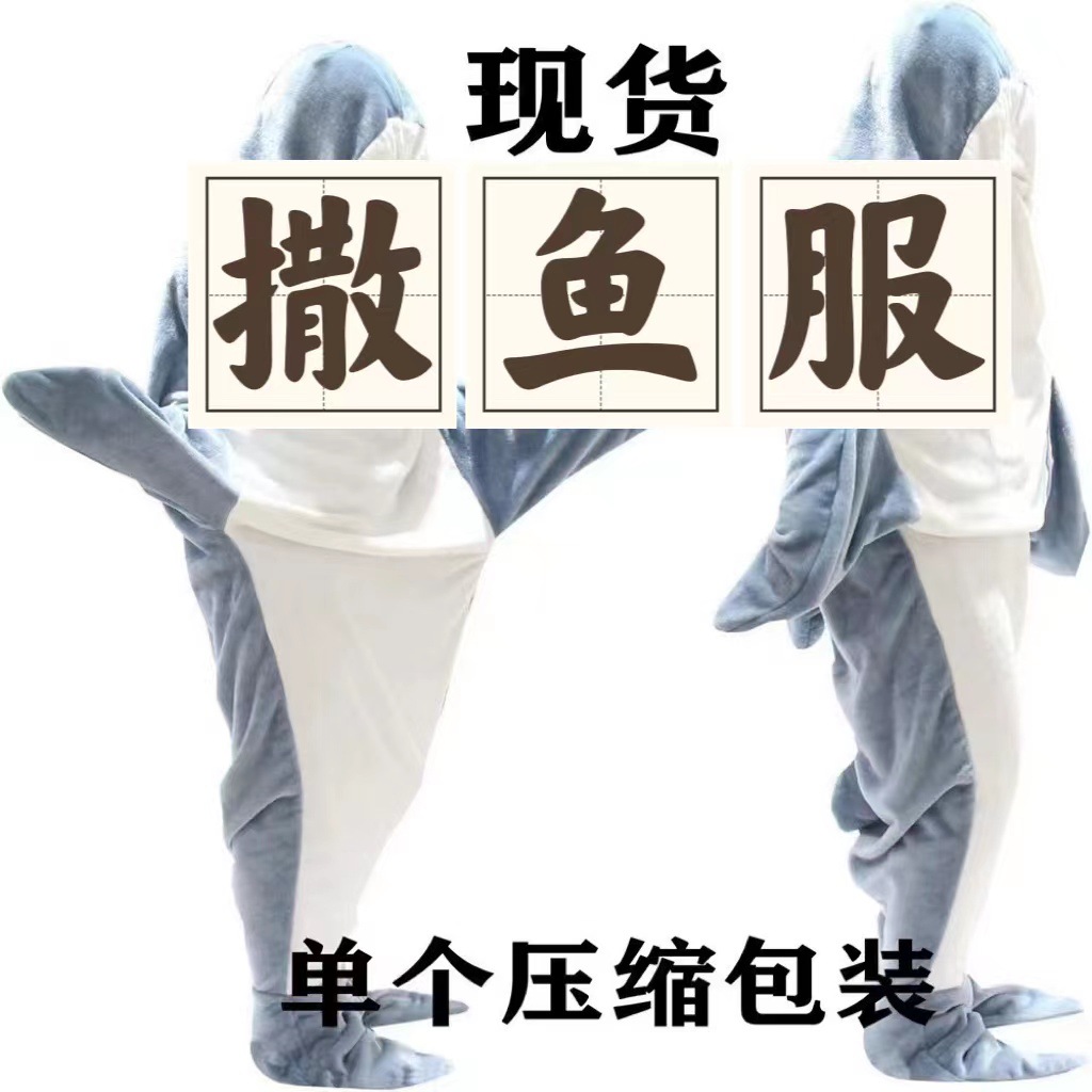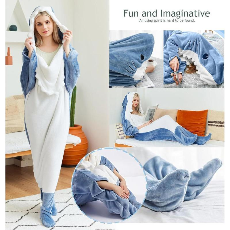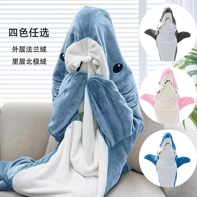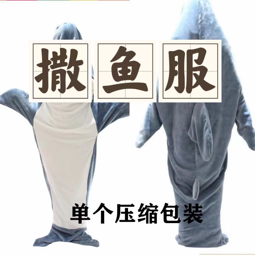 鲨鱼睡袋连体服Shark Blanket法兰绒一体式毛毯可外穿连帽家居服