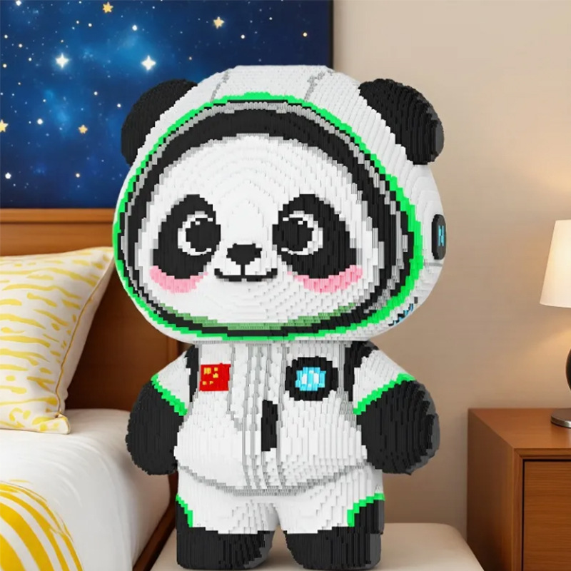 新款宇航员熊猫抱竹兼容乐高积木儿童玩具立体拼图生日礼物DIY