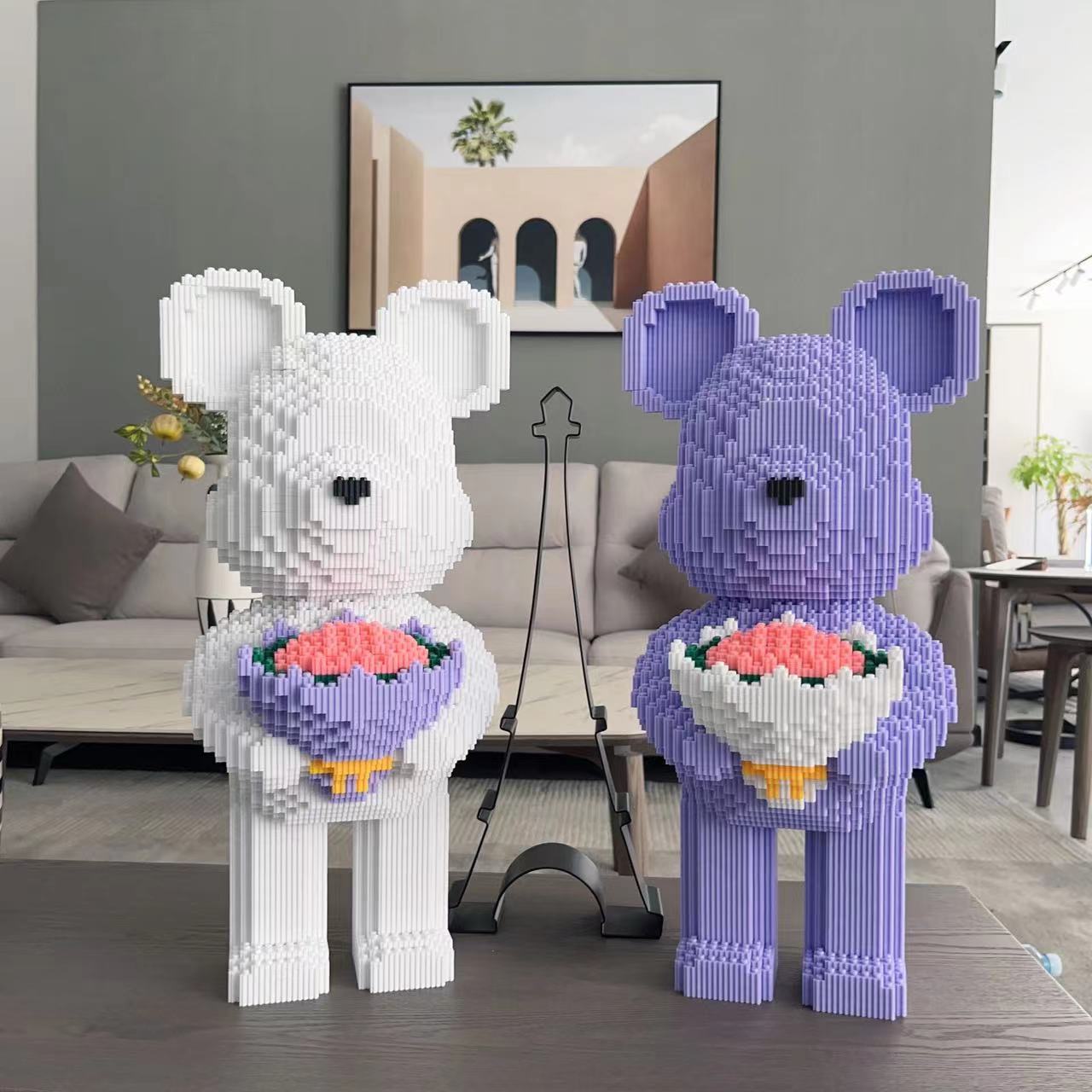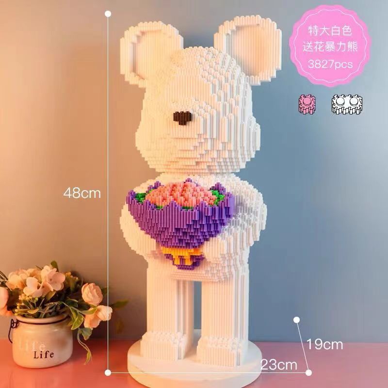 ビルディングブロック、かわいいクマ、花の配達、暴力的なクマ、子供のおもちゃ、パズル、誕生日プレゼント、中国のバレンタインデーギフト